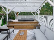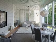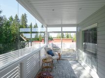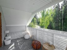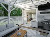 Nautit arjen ja juhlien hetkistä kahdella lasitetulla terassilla – tilaa löytyy sekä rentoon oleskeluun että illanviettoihin. Yläkerran terassilta avautuvat kauniit näkymät järvelle, ja pihapiirin ulkoporeallas tekee rentoutumisesta täydellisen.