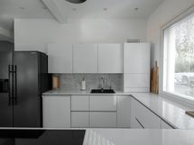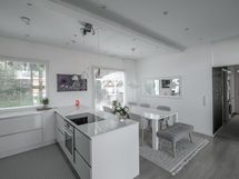 Keittiön varusteet: Astianpesukone, jääkaappipakastin, erillisuuni, liesituuletin ja liesitaso. Liesi: liesitaso, erillisuuni. Työtason materiaali: Kivi.