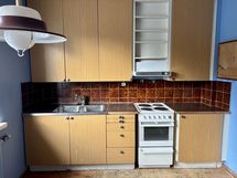 Liesi: sähköliesi. Työtasot: laminaatti. Kylmäsäilytys: jääkaappi/pakastin. Varustus: liesituuletin.