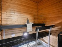 Sauna, sähkökiuas uusittu, kylpyhuone, erillinen wc, suihku, peilikaappi, allaskaappi, pesukoneliitäntä, lattialämmitys, kiinteät valaisimet.