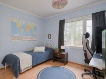 Keittiö: lattiassa laminaatti, seinät tapetoidut. Olohuone: lattiassa laminaatti, seinät tapetoidut. Makuuhuone 1: lattiassa laminaatti, seinät tapetoidut, komeroita. Makuuhuone 2: lattiassa laminaatti, seinät tapetoidut, komeroita. Makuuhuone 3: lattiassa laminaatti, seinät tapetoidut, komeroita. Kodinhoitohuone: lattiassa laatta, seinät maalatut, uloskäynti kuistille. Kylpyhuone: lattia ja seinät laatoitetut, ikkuna, WC-istuin. Eteinen: lattiassa laminaatti, seinät tapetoidut. Wc: lattiassa laatta, seinät maalatut, ikkuna. Tuulikaappi: lattiassa laatta, seinät maalatut.
