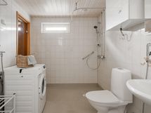 - Sauna, sähkökiuas, kylpyhuone, suihku, peilikaappi, pesukoneliitäntä, lattialämmitys, kiinteät valaisimet.