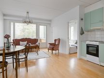 - Jääkaappi, pakastekaappi, lattialiesi, liesituuletin, kaapistot, kiinteät valaisimet.