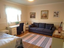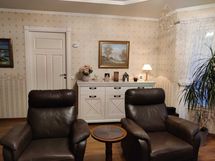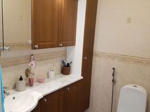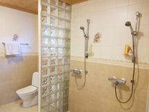 - Pesutilojen kuvaus: Ikkuna tuo tilaan runsaasti luonnonvaloa. Tilassa on pieni pesuallas. Varustus: wc-istuin, suihku, kiinteät valaisimet. Erillisen WC:n kuvaus: peilikaappi, pesuallas allaskaapilla, wc-istuin, bidee sekä lattialämmitys.