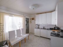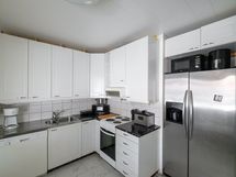 Keittiön varusteet: Jääkaappipakastin, liesi, astianpesukone ja liesituuletin. Liesi: Sähköhella. Työtason materiaali: Laminaatti. Keittiö uusittu vuonna 2022.