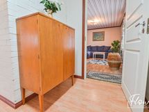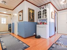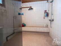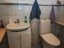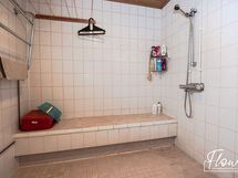 - Pesutilojen kuvaus: Tilava ja valoisa kylpyhuone, jossa ikkuna tuo runsaasti luonnonvaloa. Lisäksi tilassa on käytännöllinen istumapenkki. Varustus: pesukoneliitäntä, lattialämmitys, suihku, kiinteät valaisimet. Erillisen WC:n kuvaus: Peilikaappi, pesuallas, allaskaappi, korkea kaappi , wc-istuin, bidee.