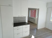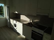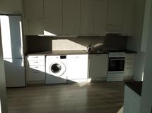 Paljon kaappitilaa, Laminaattitasot, Astianpesukone, Keraaminen liesi, Liesituuletin, Jää-pakastinkaappi, pyykinpesukone