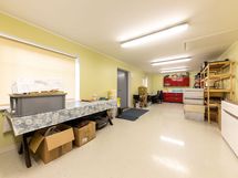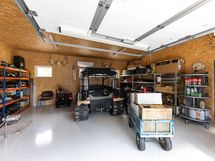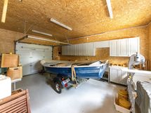 Ulkoalueelle ajettaessa löydämme autotallin, johon mahtuu autoja ja harrastusvälineitä.