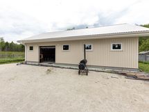 Rakenne: puurakennus matalalla perustuksella, eriste 200mm, ulkoviimeistely profiloitua peltiä