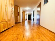 Viereisen oven avaudumme suurelle käytävälle, joka halkaisee talon keskeltä ja avaa sisäänkäynnin kaikkiin huoneisiin ja kodinhoitotiloihin. Käytävä on todella tilava ja sen kerrotaan saaneen myös suuremmalle porukalle mahdollisuuden nauttia tanssin askeleista.