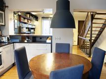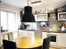 - Lasikaapit, Laminaattitasot, Astianpesukone, Integroidut koneet, Sähköliesi, Keraaminen liesi, Liesituuletin, Liesi tai uuni erikseen, Jääkaappi, Tilaa isolle ruokapöydälle