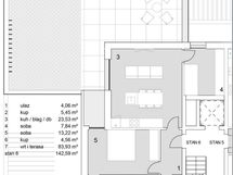 Three bedroom apartment on the first floor. For the location, surfaces and layout of the rooms, see floor plan. See other units from the project as well. Interiors use materials from the world's leading manufacturers with an emphasis on functionality and aesthetics, while the gardens are marked with indigenous plants. Distance from the beach 50-100 m. Moving in spring 2024