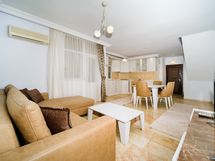 Konak Garden 2 sijaitsee Konaklissa. Se on erittäin hyvin hoidettu ja kaunis villa, jossa on vihreä ympäristö ja lyhyt kävelymatka merestä. Konaklin pikkukaupungissa on kauppoja, pankkeja, ravintoloita ja kahviloita. Pääset Alanyaan bussilla 10 minuutissa. Tämä erittäin kaunis vihreä asuinalue koostuu 62 duplex-huvilasta ja siinä on yhteinen uima-allas, jota ympäröi suuri aurinkoterassi. Villa on 120m2, siinä on 3 kerrosta. Pohjakerroksessa on tiilava terassi, josta on näkymät kauniiseen vihreään ympäristöön. Tässä kerroksessa on kaksi kylpyhuonetta. Toisessa kerroksessa on 2 makuuhuonetta, kylpyhuone ja wc. Yläkertaa voidaan käyttää varastointiin ja pesukoneeseen, siellä on myös kattoterassi. Villa on täysin kalustettu ja siellä on rullaluukut. Kompleksissa on mukava puutarha. Loistava tilaisuus sekä pysyvään asumiseen että toisena kotina auringossa.