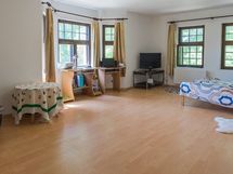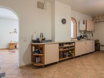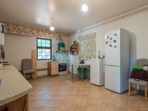 - Tilaa isolle ruokapöydälle, Paljon kaappitilaa, Paljon työskentelytilaa, Puutasot, Sähköliesi, Jääkaappi, Viileäkaappi, Suuri tiskipöytä, Pesukoneliitos, Pakastin