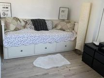 This charming property features two generously sized bedrooms, each measuring approximately 12 square meters. One of these bedrooms offers the convenience of a walk-in closet for added storage. Additionally, there are three smaller bedrooms, each spanning around 9 square meters in size.