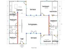 The house is 140 sqm: 5 bedrooms, 2 bathrooms, 2 storage rooms, kitchen, living room. The house is bright all day, thanks to its large windows and its location.