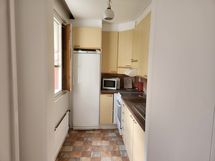1h + p+ keittiö, suihku, vaatehuone, säilytys komero, yleld saumaa.