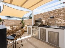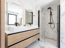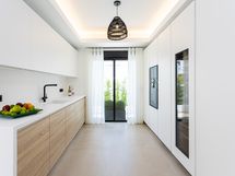 Paljon kaappitilaa, Paljon työskentelytilaa, Kivitasot, Integroidut koneet, Liesi tai uuni erikseen, Induktioliesi, Jääkaappi, Pakastin