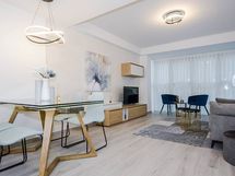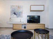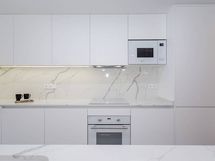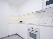 Liesi: keraaminen, erillisuuni. Kylmäsäilytys: jääkaappi/pakastin. Varustus: liesituuletin, mikroaaltouuni, astianpesukone, kiinteät valaisimet.