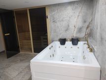 - Suihkuseinä, Suihku, Kylpyamme, Tassuamme, Suihkukaappi, Useita suihkuja, Poreamme, Kuivauskaappi, Kosteusvahti, Pesukone, Pesukonevalmius, Allaskaappi, Peilikaappi, Avattava ikkuna, Erillinen WC, Lattialämmitys