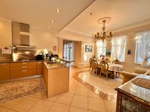 Two houses, a master's and a guest's, are for sale in the very center of Jurmala - in a park area on one plot.The main house has an area of ​​450 m2. On the ground floor there is an entrance hall, a kitchen area combined with a dining area, a living room, an office, a bathroom and utility rooms. Also on the ground floor there is a spa relaxation area - a swimming pool and a sauna. On the second floor there are 4 bedrooms, each with its own bathroom. 3 bedrooms have access to a spacious balcony. The second small guest house with an area of ​​145 m2. The house has 2 bedrooms, a small kitchen.Katso kohteen tarkemmat tiedot www.habita.com -sivustolta.
