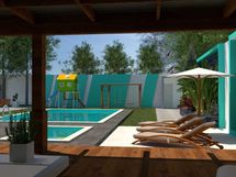 Ulkoiluvälinevarasto, Jätekatos, Uima-allas, Parkkihalli, Kattoterassi