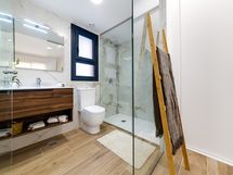 Varustus: suihkuseinä, wc-istuin, suihku, peilikaappi. Varustus: suihku, suihkuseinä, peilikaappi.