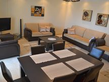 Avara olohuone ja ruokailutila on suunniteltu vaikuttamaan. Tyylikkäällä modernilla sisustuksella koristeltu olohuone sopii täydellisesti rentoutumiseen ja viihteeseen. Laaja ruokailutila on ihanteellinen vieraiden isännöimiseen, ja siellä on runsaasti tilaa sosiaalisiin kokoontumisiin.