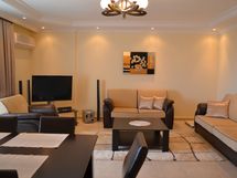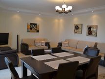 Tässä vaikuttavassa huoneistossa on tilava ja moderni design, ylelliset huonekalut ja henkeäsalpaavat näkymät Välimerelle, allas-alueelle ja kaupunkiin. Kun kävelet sisään, löydät suuren rakenteeltaan avoimen olohuoneen ja ruokailutilan, jossa on tyylikäs moderni sisustus. Huoneisto on täysin varustettu tyylikkäillä huonekaluilla, kodinkoneilla ja ilmastointi laitteilla. Tilavalta parvekkeelta on kaunis näkymä vehreään puistoon ja allas-alueelle.