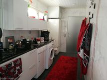 Suihku, Pesukone, Kuivausrumpu, Allaskaappi, Laattalattia, Laattaseinä, Halogeenivalot, Avattava ikkuna, Erillinen WC, Lattialämmitys
