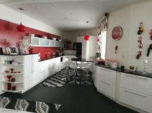 Tilaa isolle ruokapöydälle, Paljon kaappitilaa, Paljon työskentelytilaa, Halogeenivalot, Lasikaapit, Kivitasot, Integroidut koneet, Liesituuletin, Induktioliesi, Liesi tai uuni erikseen, Jääkaappi, Pakastin