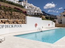 Tämä upea kattohuoneisto sijaitsee suositussa 9 Lions Residences -yhteisössä, aivan Puerto Banúsin läheisyydessä, kolmen tasokkaan golfkentän vieressä. Läheltä löytyy niin ,Puerto Banúsin satama luksusliikkeineen, jahteineen kuin monipuolisine ravintoloineen.