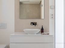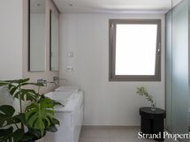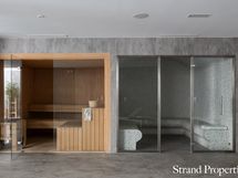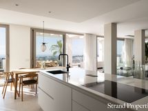 Huoneistossa on hyvin toimiva pohjaratkaisu ja poikkeuksellisen korkealaatuiset materiaalit, kuten Gaggenaun kodinkoneet ja Villeroy & Boch -kylpyhuoneet. Osittain katetut terassit on suunniteltu hyödyntämään alueen 300 aurinkoista päivää vuodessa, ja lattiasta kattoon ulottuvat ikkunat tulvivat luonnonvalolla.