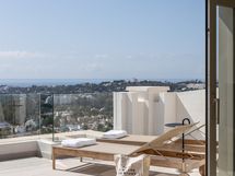 Tämä ainutlaatuinen ja hyvin suunniteltu kaksikerroksinen kattohuoneisto tarjoaa erinomaisen yksityisyyden ja henkeäsalpaavat näkymät. Yksi makuuhuoneista avautuu La Concha -vuorelle ja toinen makuuhuoneista avautuu järvelle päin. Huoneisto avautuu etelään, tarjoten upean panoraamanäkymän merelle. Huoneistossa on kolme tilavaa makuuhuonetta, joista jokaisella on oma kylpyhuone sekä runsaasti säilytystilaa. Ylimmässä kerroksessa sijaitsee päämakuuhuone, jonka yhteydessä on ihastuttava aurinkoterassi ja Drop Jacuzzi.