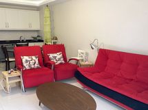 Tärkeimmät ominaisuudet: Tilava oleskelutila: Avarassa pohjaratkaisussa on viihtyisä olohuone, jossa on nykyaikainen kalustus, joka sopii täydellisesti rentoutumiseen rannalla vietetyn päivän jälkeen. Moderni keittiö: Hyvin varustetussa keittiössä on kaikki olennaiset laitteet, runsaasti säilytystilaa ja ruokailutila aterioita varten. Mukava makuuhuone: Tyylikkäästi sisustettu makuuhuone tarjoaa rauhallisen pyhäkön, jossa on runsaasti luonnonvaloa ja säilytystilaa. Tyylikäs kylpyhuone: Modernissa kylpyhuoneessa on laadukkaat kalusteet ja virkistävä suihku.