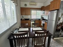 Hyvin hoidettu talo lämpimässä Thaimaassa on lähellä Hua Hiniä ja Cha Amia. Molempiin on n. 15-20 minuutin ajomatka. Huai Sai Tain kylässä on kaikki tarvittavat palvelut: kauppoja, monta ravintolaa, hieronta- ja hyvinvointipalveluita ymv. Alueella on useampia lomakyliä, joissa on kansainvälistä asujaimistoa. Rantaankaan ei ole kuin vajaan kymmenen minuutin ajomatka. Lähimmälle golfkentällekään ei ole matkaa kuin n. 3 km. Talossa on 3 makuuhuonetta, olohuone ja keittiö sekä 2 kylpyhuonetta. Lisäksi talossa on tilava varasto. Varustetasoon kuuluvat liesi, uuni, astianpesu- ja pyykkikone. Asunto on täysin kalustettu ja kalusteet sisältyvät hintaan. Kauppaan kuuluvat myös skootteri ja 3 polkupyörää. Samassa kauniissa pihassa on 4 taloa, joilla on yhteinen uima-allas. Allas on kooltaan n. 4x12 m.