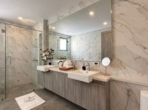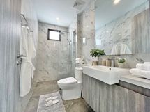 Suihku, Kylpyamme, Kaapisto, Suihkuseinä, Lämminvesivaraaja, Peili, Suihkukaappi