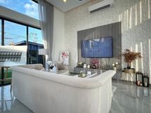 Koe ylellinen asuminen Pattayassa, Thaimaan vilkkaalla itärannikolla. Tämä upea uusi huvila, joka sijaitsee Bang Lamungin sydämessä, tarjoaa 3 tilavaa makuuhuonetta, 4 modernia kylpyhuonetta ja kokonaispinta-ala 273,65 neliömetriä. Markkinointia edeltävässä vaiheessa tämä kiinteistö on harvinainen tilaisuus omistaa upouusi koti halutulla alueella. Nauti uima-altaan mukavuudesta, autotallin pysäköinnistä ja runsaasta säilytystilasta. Huvilassa on sähköliesi, uuni ja liesituuletin sekä ilmastointi ja turvajärjestelmä. Tämä kiinteistö sijaitsee lähellä ostoskeskusta, ruokakauppaa ja koulua, ja se on täydellinen perheille ja ammattilaisille. Koska se on lähellä rantaa, sairaalaa ja venesatamaa, sinulla on kaikki tarvitsemasi kotiovellasi. Hyödynnä kaupungin kukoistavaa yöelämää ja viihdemahdollisuuksia tai nauti tämän kauniin alueen rauhallisesta ympäristöstä.Hinta laskettu kurssilla 0,026211.