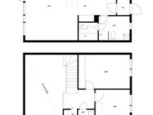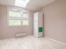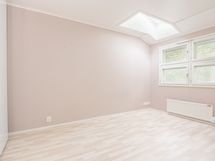 Yläkerrassa kaksi hyvän kokoista makuuhuonetta, vino katto ja kattoikkunat. Hyvät kaappitilat sekä vaatehuone aulassa.