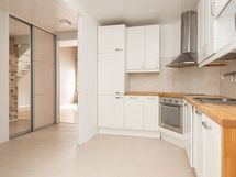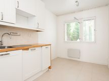 Varusteet: Jääkaappipakastin, Astianpesukone. Työtaso: Puutaso. Liesi: Keraaminen liesi, Erillisuuni. Kiva keittiö johon mahtuu isompikin ruokapöytä.