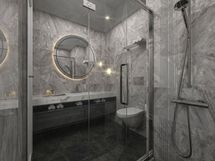 - Suihku, Pesukoneliitäntä, Mukavuuslattialämmitys, Tilaa pesukoneelle, WC-istuin, Peili, Peilikaappi, Suihkukaappi, Vesikiertoinen lattialämmitys, Kaapisto, Allas, Suihkuseinä