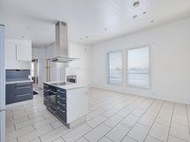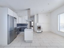 Talossa on avara olohuone, jossa on varaava takka luomassa lämpöä ja tunnelmaa. Keittiö on Penttilän puusepänliikkeen käsialaa ja se on varustettu kaikilla tarvittavilla kodinkoneilla. '