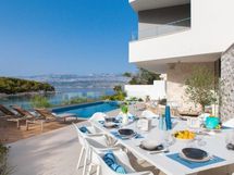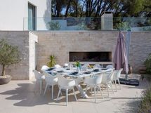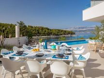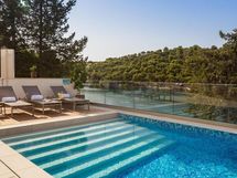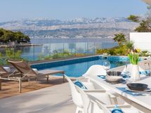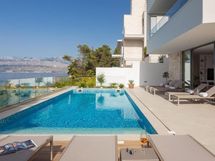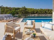 Experience the ultimate in luxury living in Splitska, Croatia, in this stunning new villa. This 3-floor property boasts 6 spacious bedrooms, 6 bathrooms, and 8 rooms, offering the perfect blend of comfort and style. The villa features a large public space on the ground floor with a billiard room, kitchen, dining room, and wc, surrounded by a charming garden with a large terrace, swimming pool, BBQ area, and outdoor dining space. The upper floor offers four bedrooms with sea views, a bathroom, and a wc, while the top floor features two additional bedrooms, a bathroom, and a fitness room with a Finnish sauna. Enjoy the benefits of air conditioning, air-source heat pump heating, and a range of common areas, including a storage room, sauna, technical room, gym, and laundry room. With a parking space and proximity to the airport, this villa is the perfect choice for those seeking a luxurious lifestyle in Splitska.