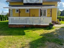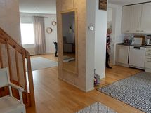 Alakerrassa runsaat oleskelu-, keittiö/ruokailu- kodinhoito-. sauna- ja pesuhuonetilat. Katettu oleskeluterassi. Yläkerrassa makuuhuoneet ja vc sekä parveke.