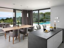 Moderni huvila panoraamanäköalalla merelle, vain 2 km: n päässä rannikolta, upealla merinäköalalla ja upealla maastolla! Rauhallinen viheralue lähellä Rabacia! Erittäin yksityinen sijainti! Rakennusala: 300 m² Tontti: 2 874 m²