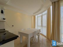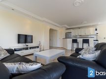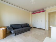 Makuuhuoneissa ja olohuoneessa ilmastointi/lämmitin asunnon lämpötilan säätelyyn. Asunto on täysin kalustettu skandinaaviseen tyyliin.Lämpimistä kesä öistä pääset nauttimaan mukavasti parvekkeilla..Amerikkalaistyyppinen keittiö, jossa baaritiski.