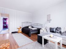 Asunnon sydän on avara olohuone. Keittiössä on nykyaikaiset kodinkoneet, jotka tekevät arjesta sujuvaa. Makuuhuone tarjoaa rauhallisen paikan lepoon, ja laminaattilattiat sekä valoisat seinäpinnat luovat tilaan raikkaan ilmeen.