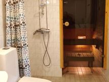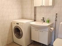Varustus: pesukoneliitäntä, lattialämmitys, wc-istuin, suihku, peilikaappi.