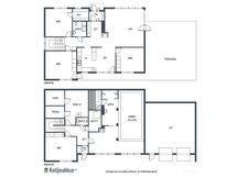 Lisäksi alakerrasta löytyvät makuuhuone, wc, kodinhoitotila, kylpyhuone sekä varasto.