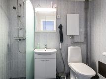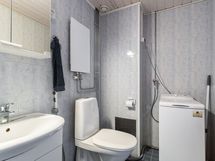 - Suihku, Pesukoneliitäntä, Tilaa pesukoneelle, Käsisuihku, Kaapisto, Allas, Suihkuseinä, WC-istuin, Peilikaappi